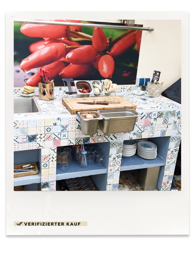 Durch die praktische Größe kann ich es im Sommer auch gut auf dem Balkon nutzen und mit dem passenden Zubehör schnell eine kleine Kücheninsel im Grünen aufbauen.