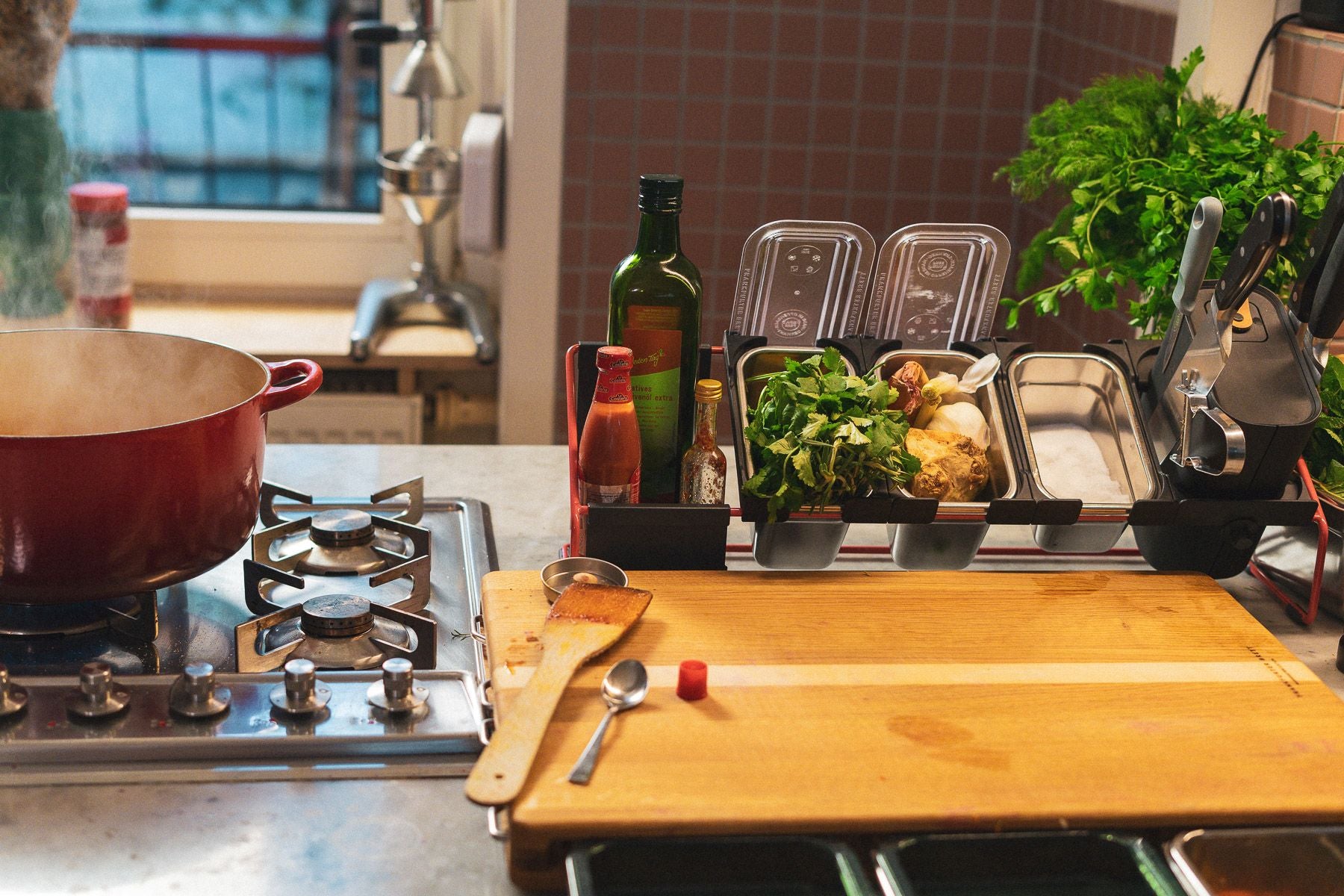 Variable Einsatzbereiche: Gut einsetzbar als erweiterte Station für Werkzeug und Zubehör - ganz wie Konsole °3, nur etwas größer. Aber auch schon groß genug, um für Mise-en-Place für mittelgroße Rezepte und als Buffetstation genutzt werden zu können.