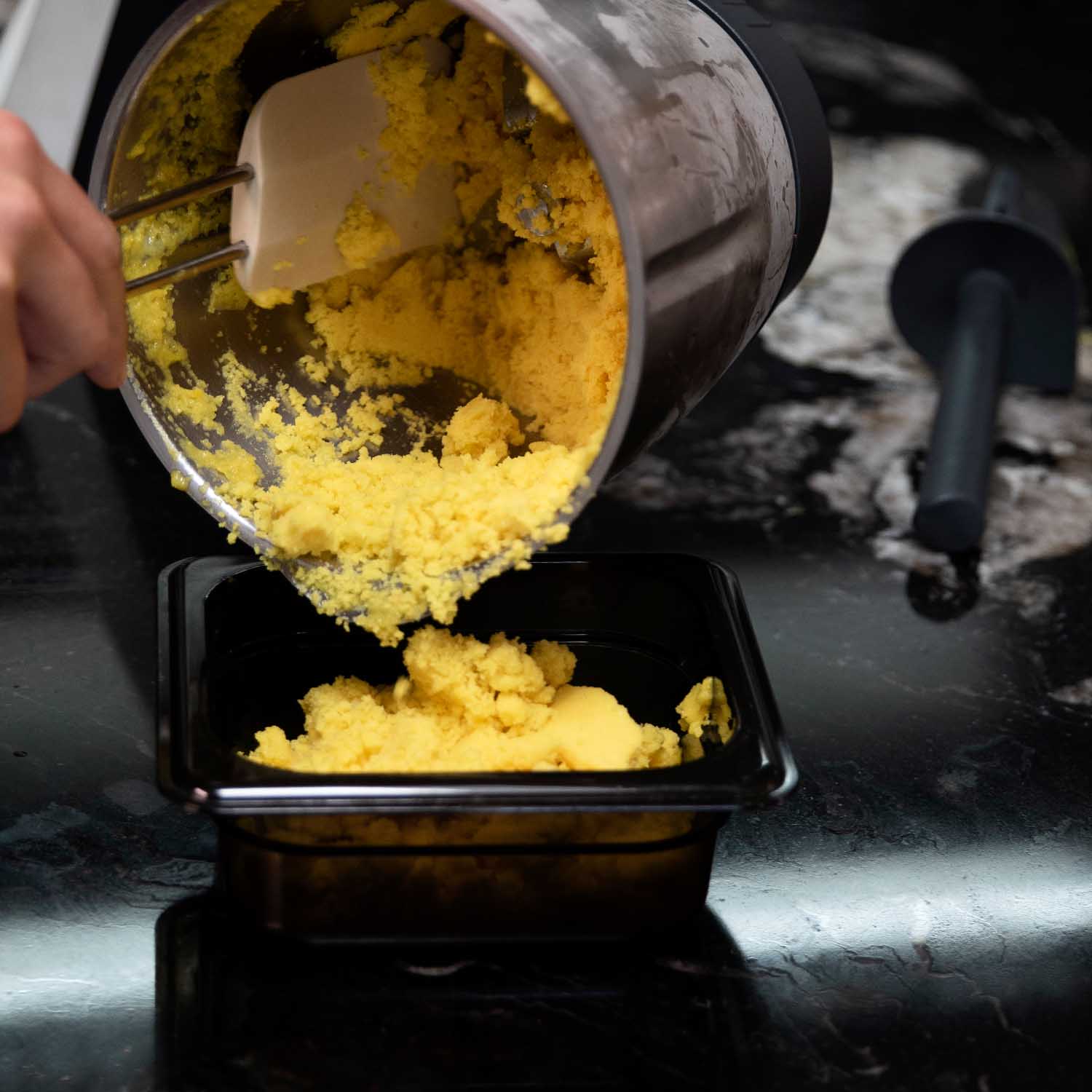 Praktisch die GN Behälter in denen man die Abfälle und die vorbereiteten Zutaten aufbewahren kann.