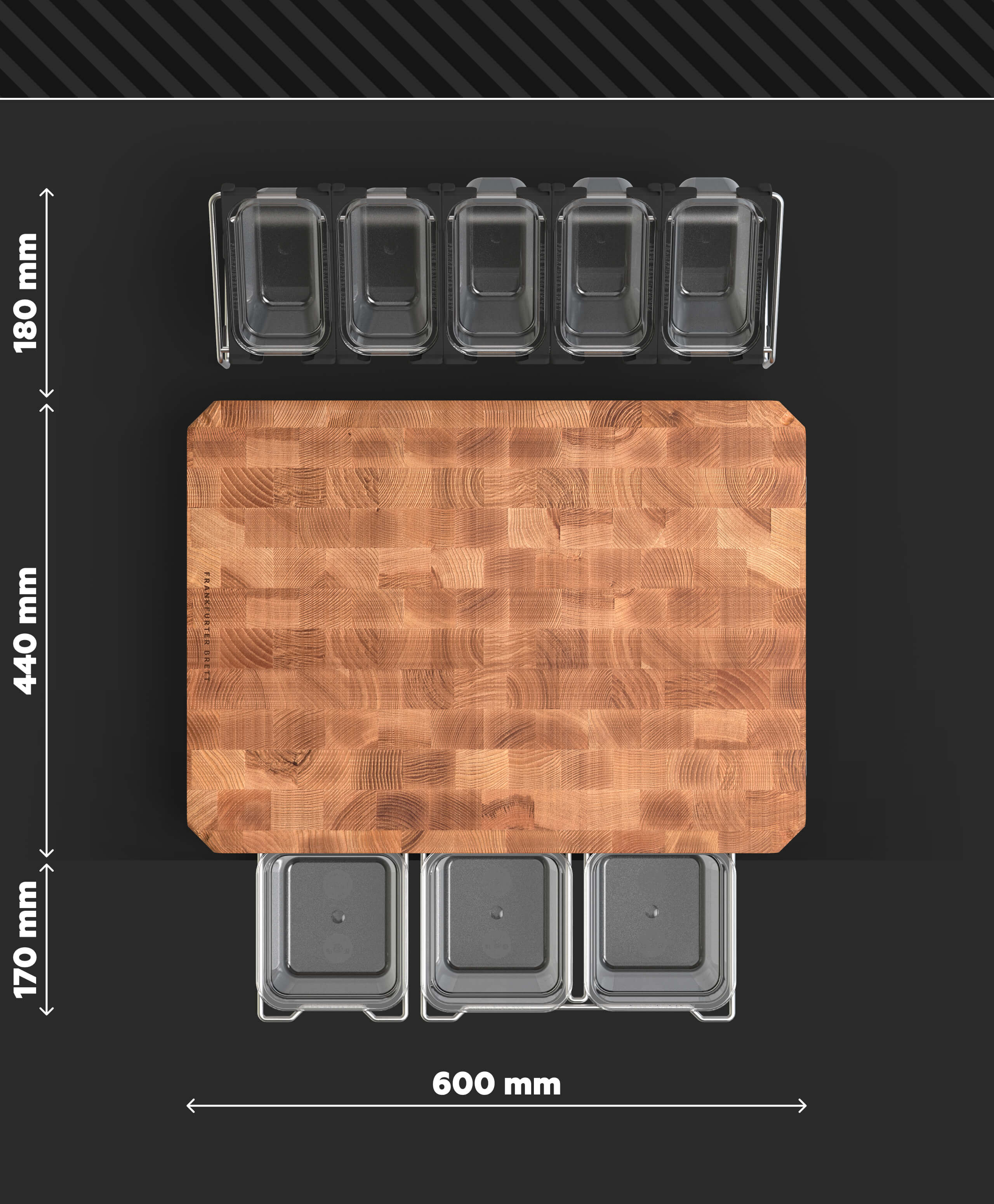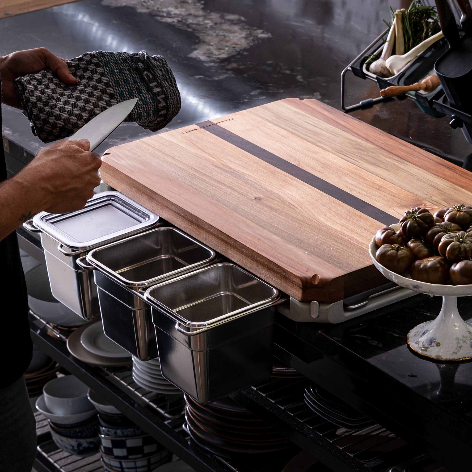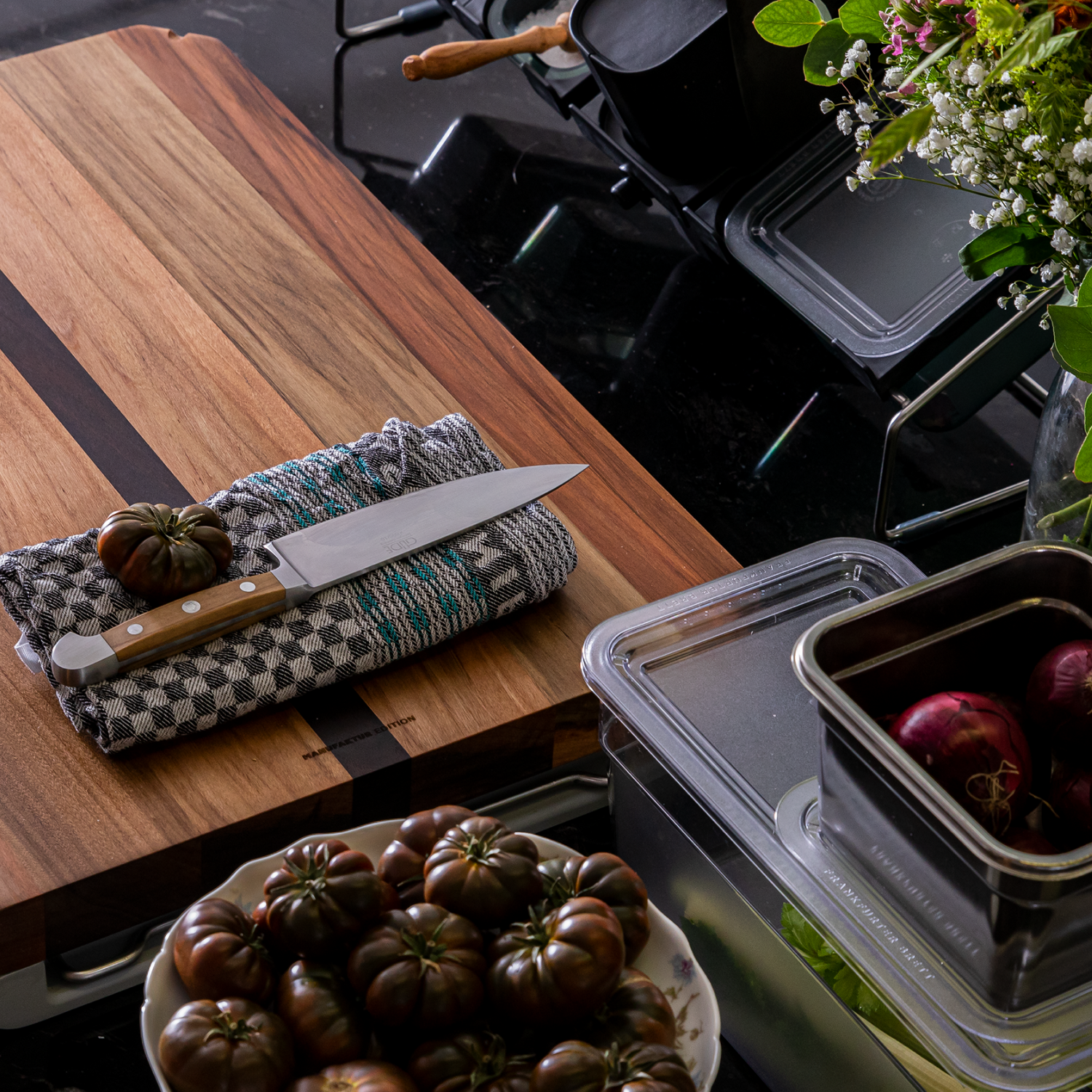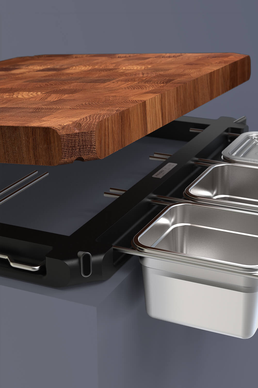 Mehr eine Multifunktionswerkbank als ein Schneidebrett, ist das PHOENIX ein extrem spezialisiertes Werkzeug, das die vielen kleinen, mühseligen Details der Küchenarbeit in einen fantastischen Workflow umwandelt, mit dem man leichtfüßig und unbeschwert auch hochkomplexe Menüs meistert. Ein Leben lang.